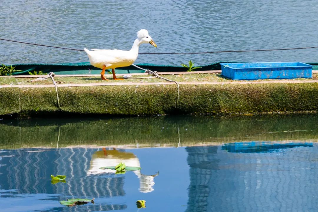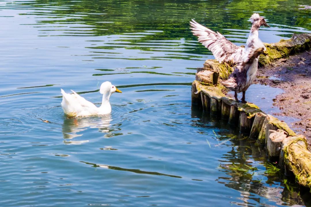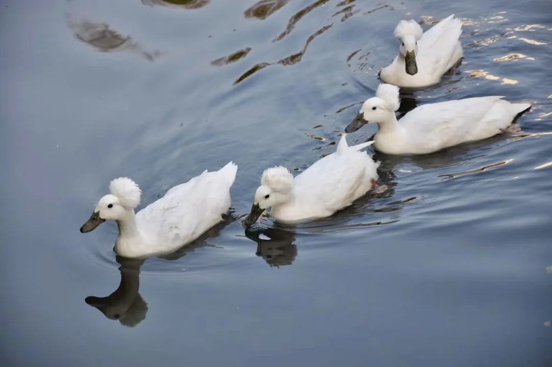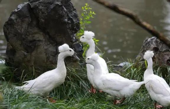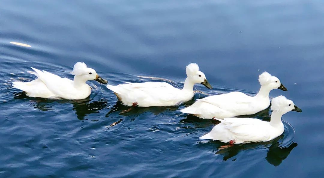 据了解这种可爱的鸭子名字叫“凤头白鸭”