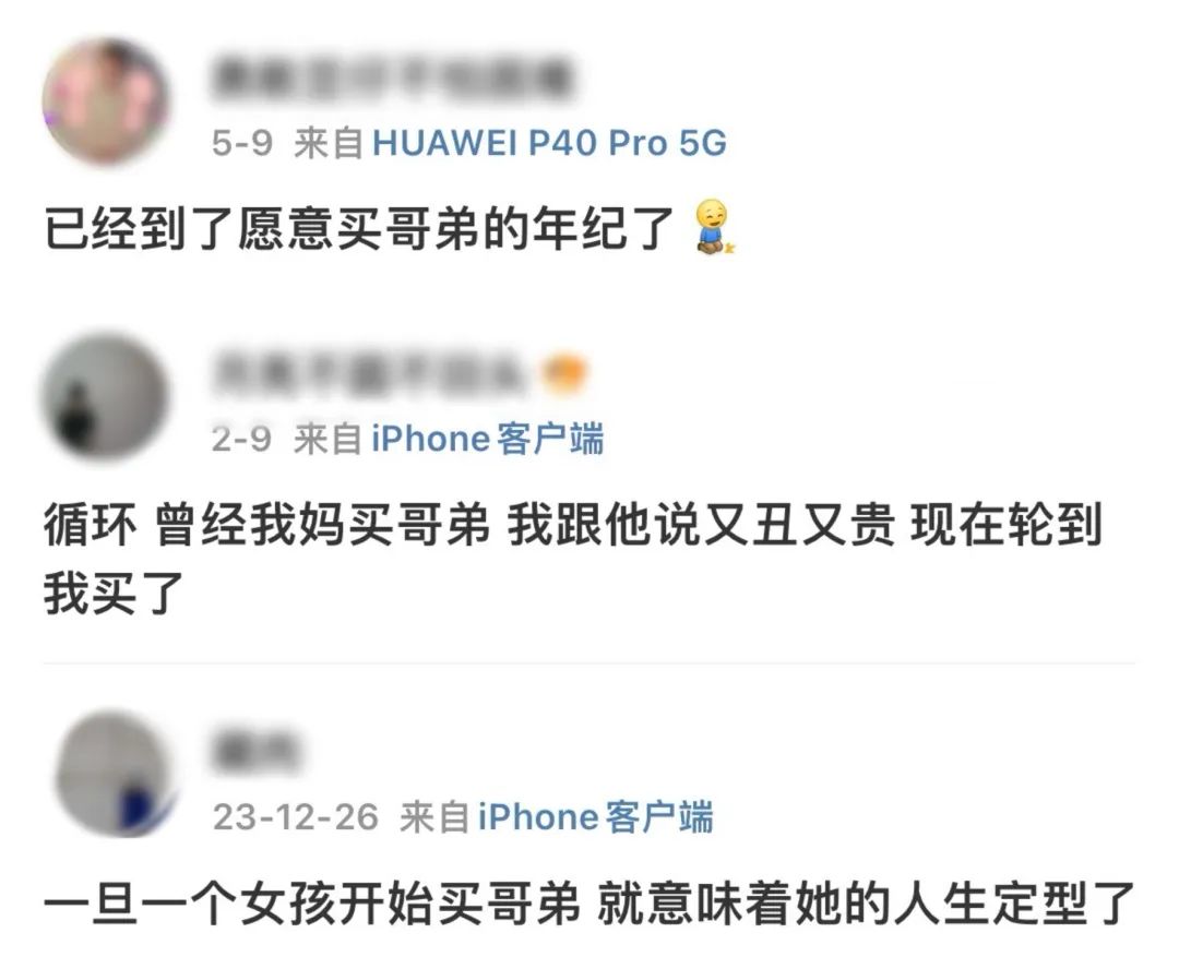 图源:@滁州哥弟哥弟甚至还是家庭和睦的象征,“很多好男人宠自己老婆女儿的方式就是买哥弟,因为他们不懂什么是时尚,只懂走到商场里,这个牌子的店铺看上去最高级。”