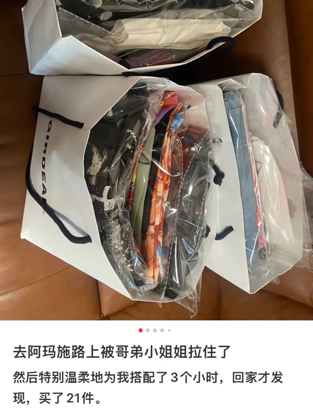 图源:@there甚至有人逛哥弟不是为了买衣服,只是把它当成一个歇脚的补给站。“和大城市里专柜的柜姐不同,哥弟的柜姐不仅会给你准备小零食和水,还会给你把衣服搭配好,用衣架摆到你眼前。如果你懒得试,甚至可以要求柜姐上身,爱马仕的VIC也就是这个待遇。”