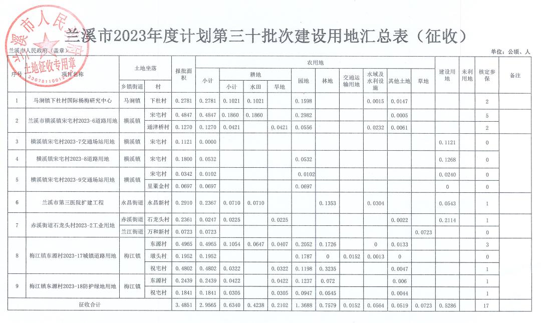 省政府于2024年1月8日作出的浙土字(330781)A[2023]-0019号《审批意见书》,审批同意兰溪市2023年度计划第三十批次建设用地。