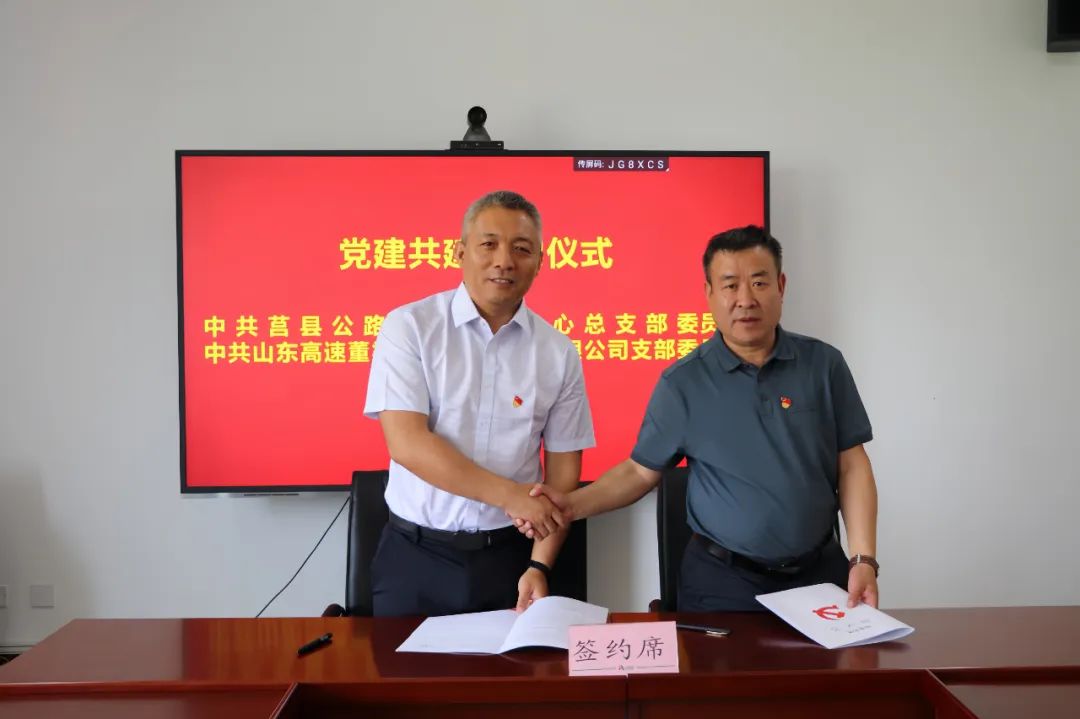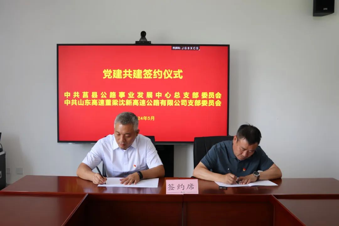 为进一步凝聚合力促进高质量发展,5月29日,中共莒县公路事业发展中心总支部委员会与中共山东高速董梁沈新高速公路有限公司支部委员会举行党建共建签约仪式并开展座谈。市公路事业发展中心党委委员、副主任,莒县公路事业发展中心党总支书记、主任袁堂涛,董梁高速项目办副主任王清明、初金章以及共建双方部分党员、相关业务科室部门代表参加仪式。