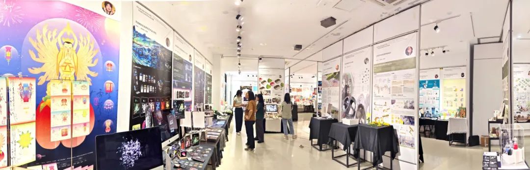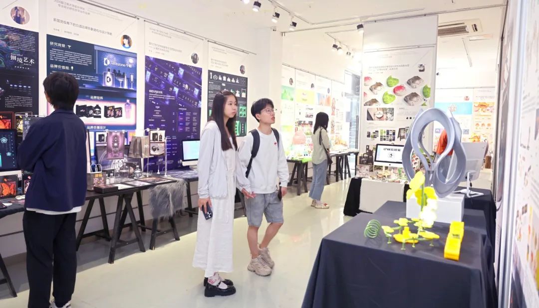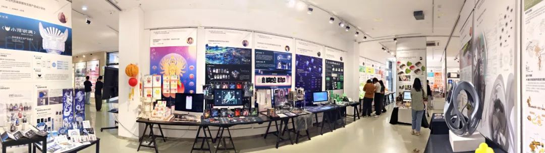 展览现场全景此次毕业作品展览作品来自2024届的169名专业硕士毕业生,分别来自工业设计与产品战略、交互与体验设计、视觉传达设计、环境艺术设计、公共艺术设计、数字媒体艺术、服装设计艺术方向。
