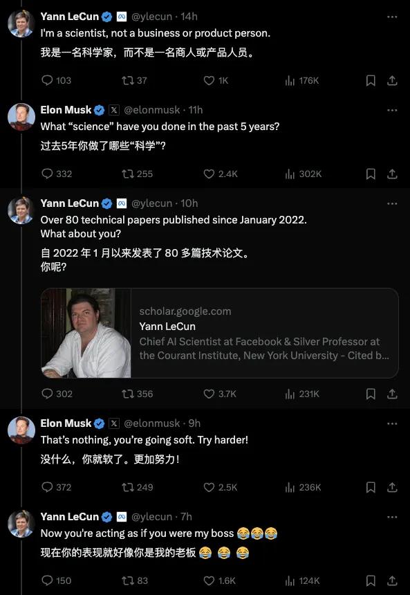 在xAI融资60亿消息披露之后,马斯克的招聘推文下,Meta首席AI科学家杨立昆也下场拆台评论,两人的互喷在X上引来了3000万人的围观。