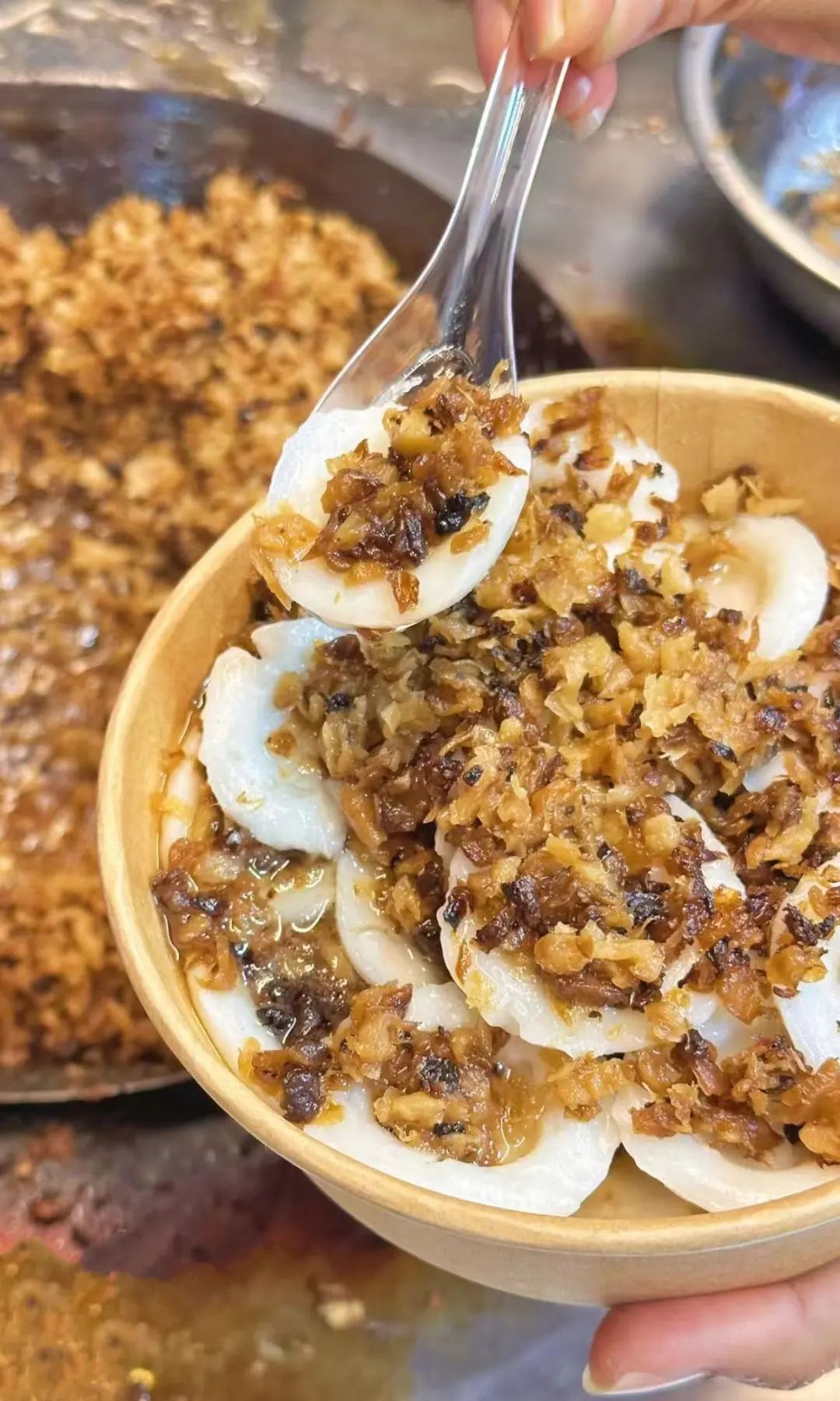 还有一种叫水粿,是把粿做成小碗状,看上去超级可爱,然后在里面加料、淋上糖浆,甜度很浓。