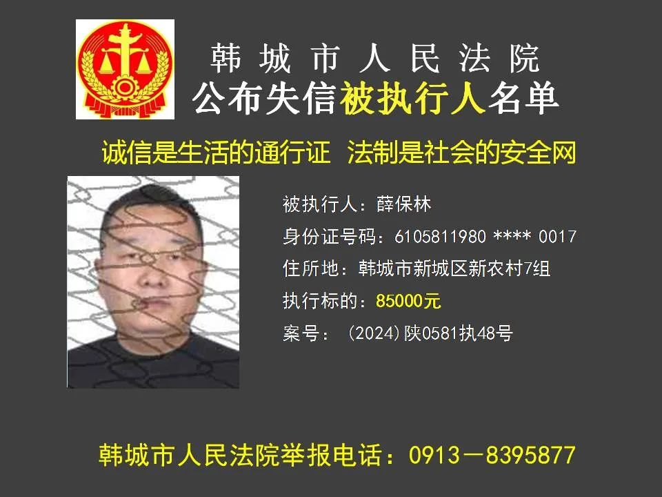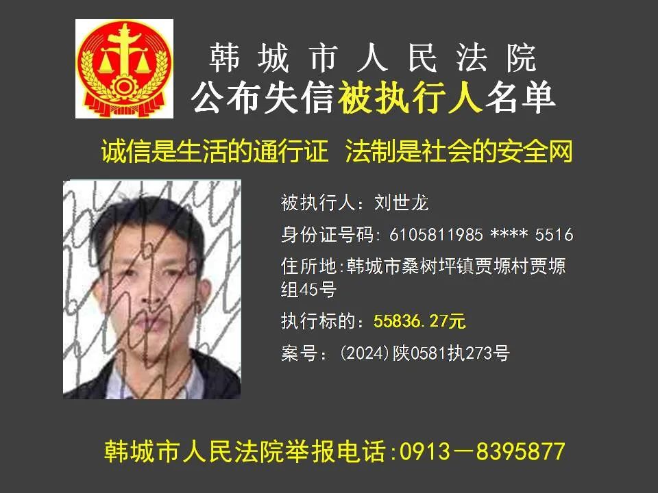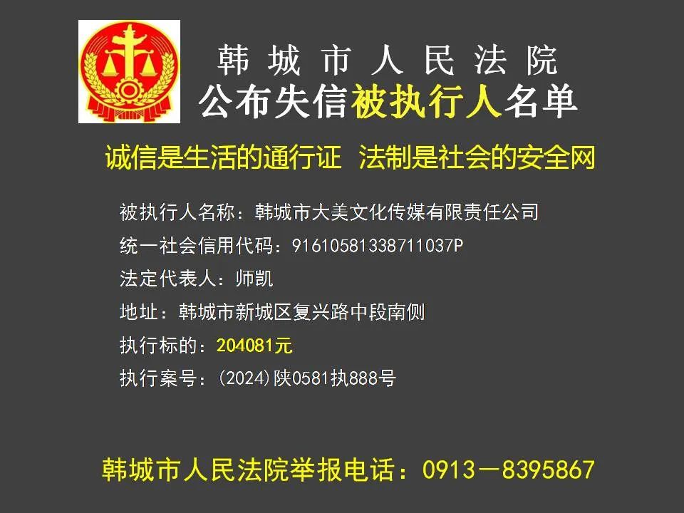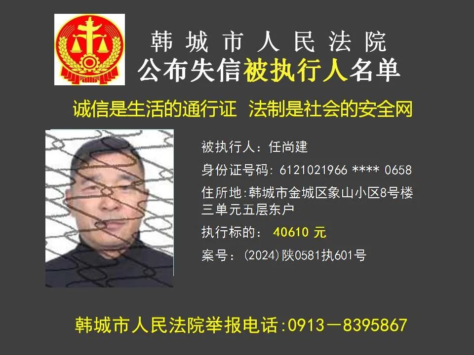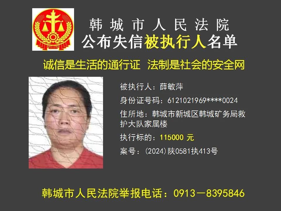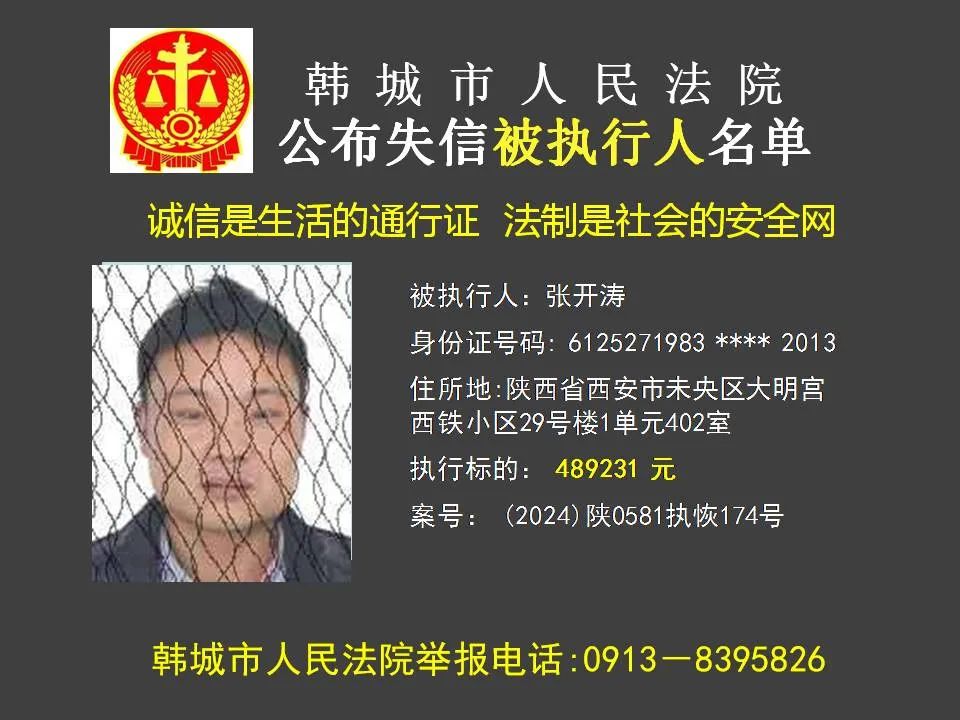 原标题:《【曝光台】韩城市人民法院公布二〇二四年第五批失信被执行人名单》