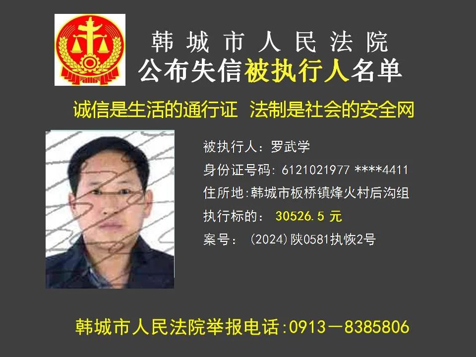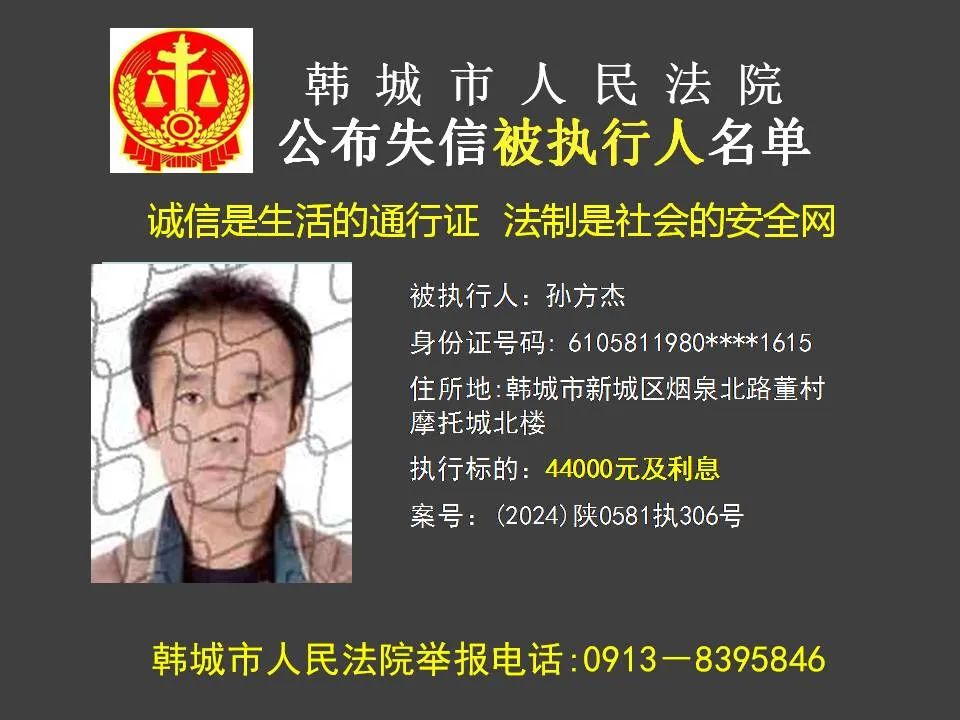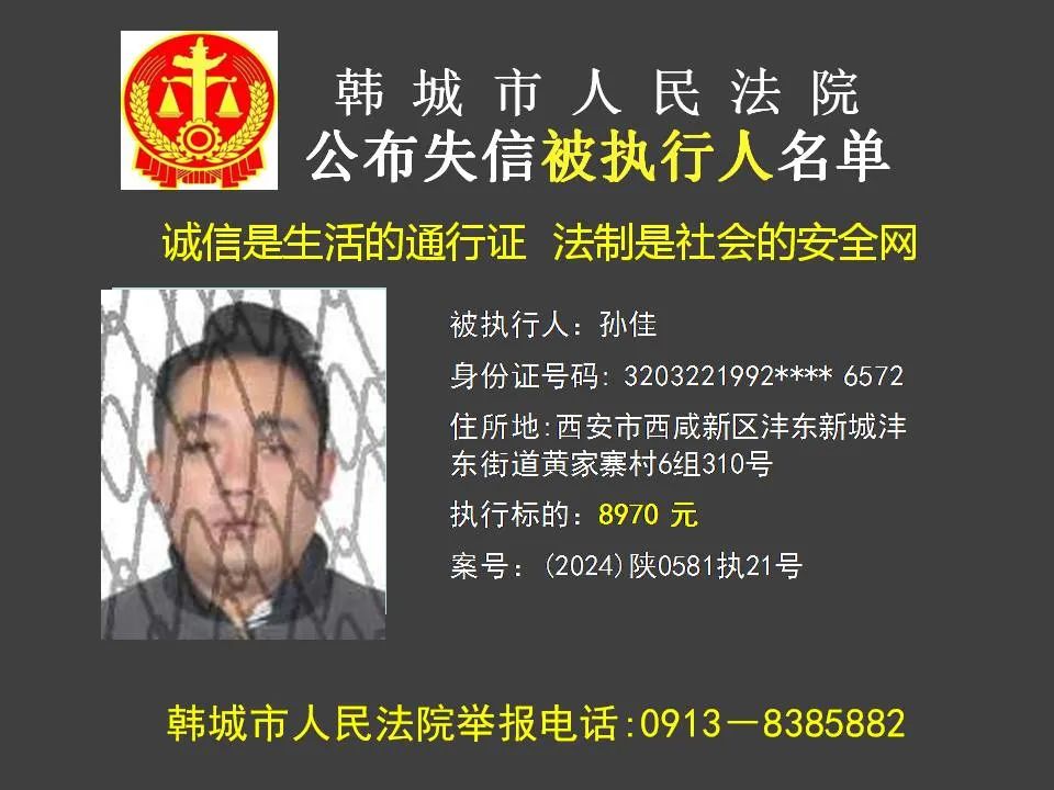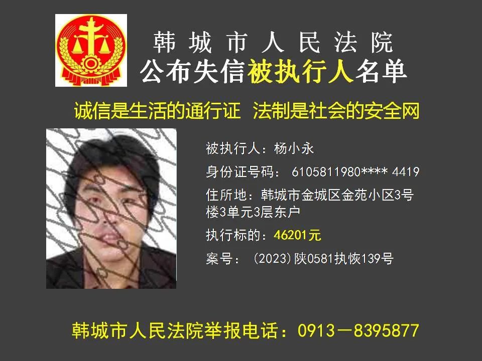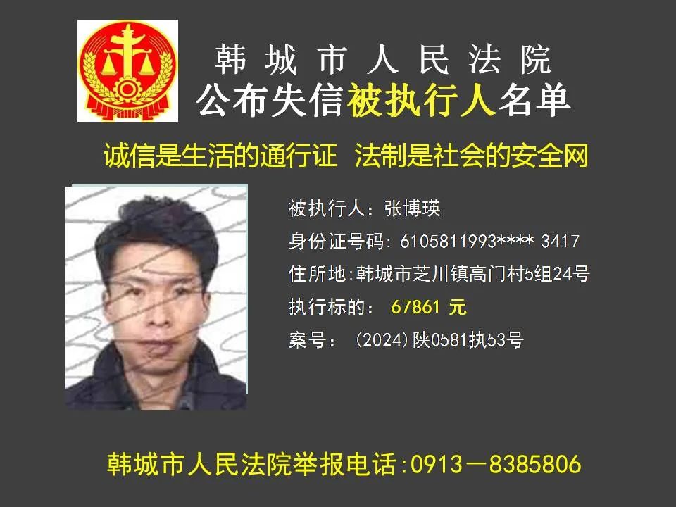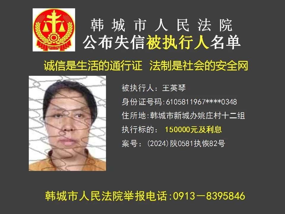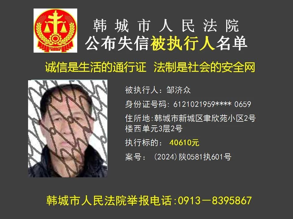 原标题:《【曝光台】韩城市人民法院公布二〇二四年第五批失信被执行人名单》