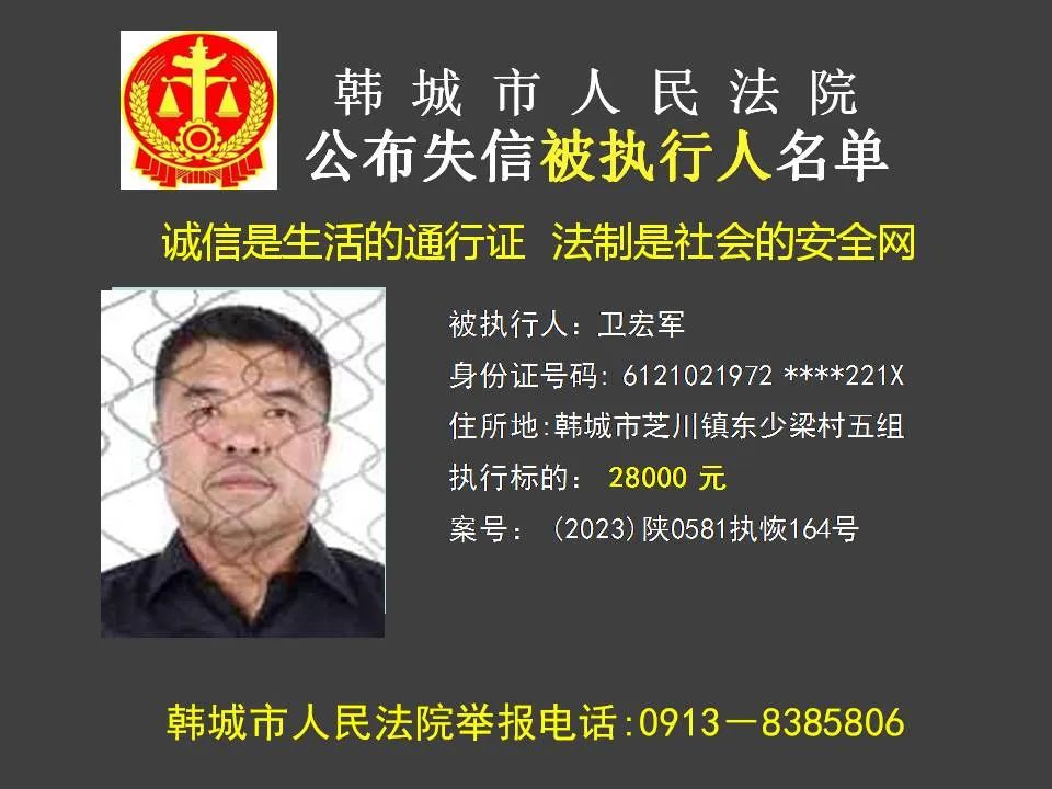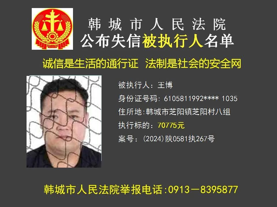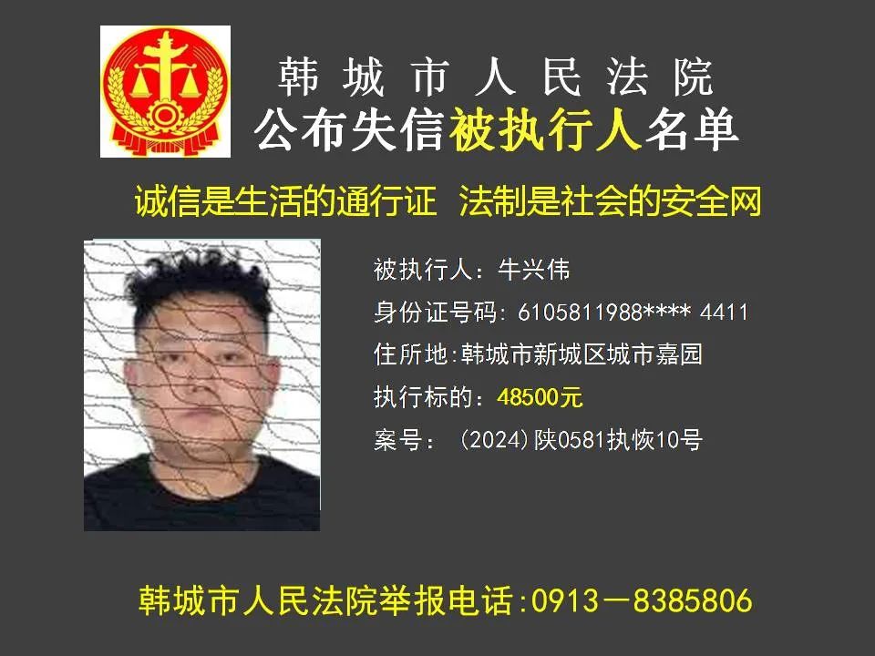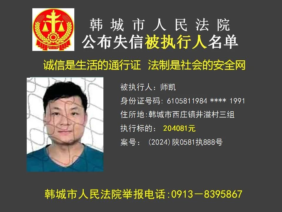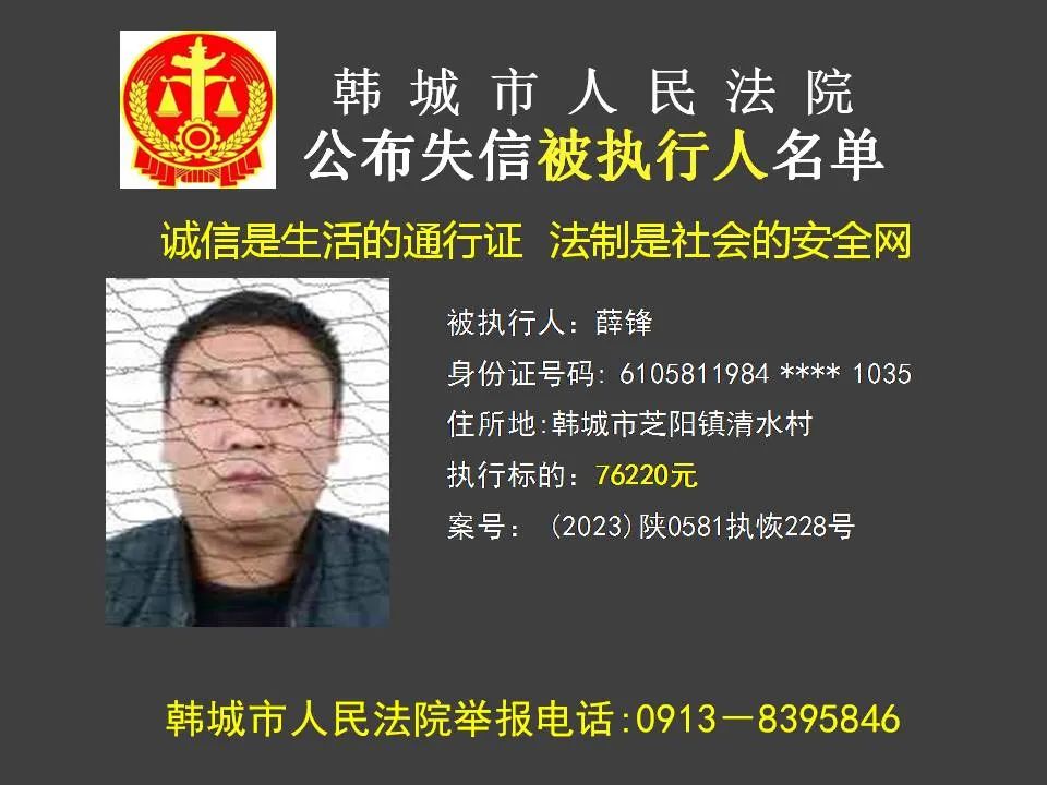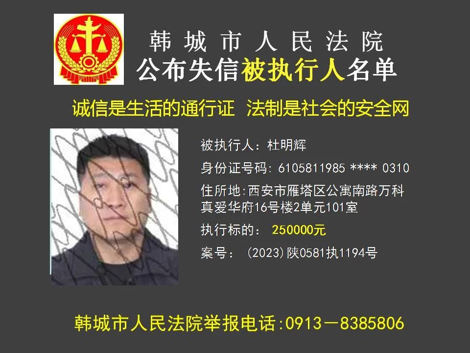 原标题:《【曝光台】韩城市人民法院公布二〇二四年第五批失信被执行人名单》