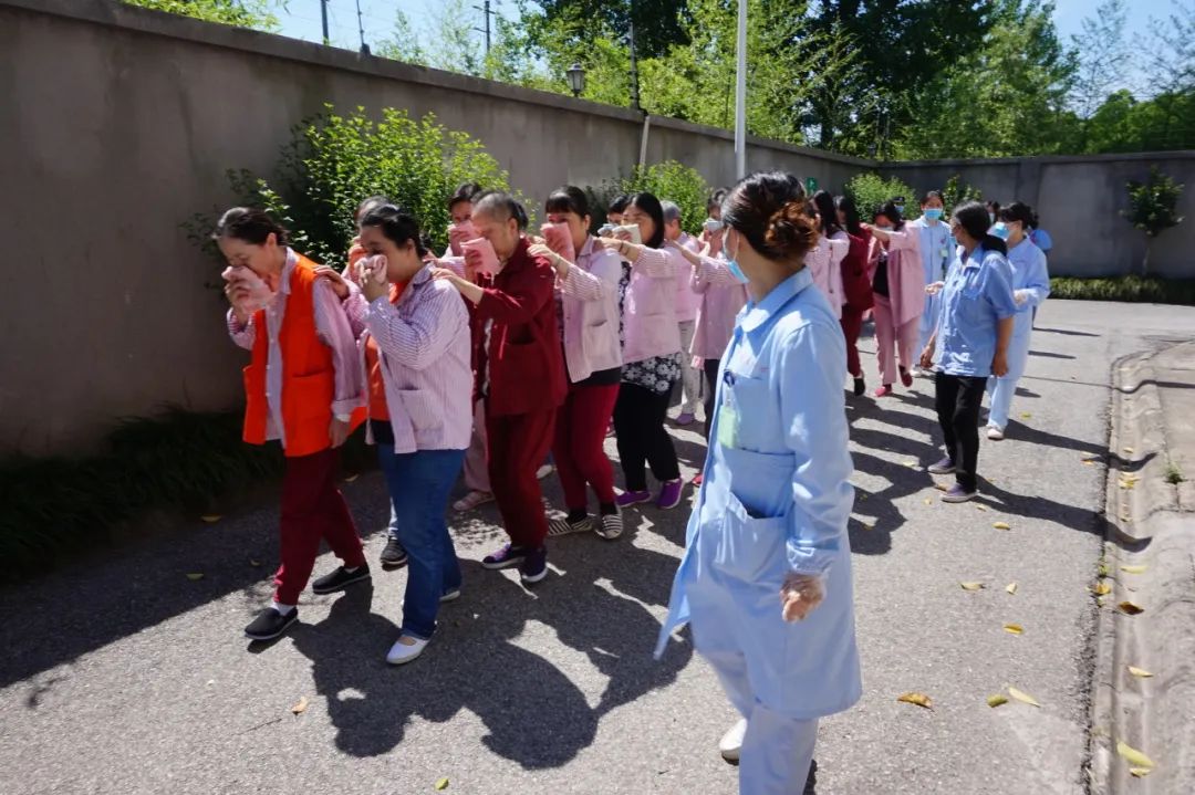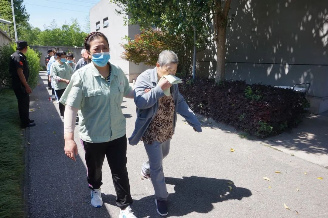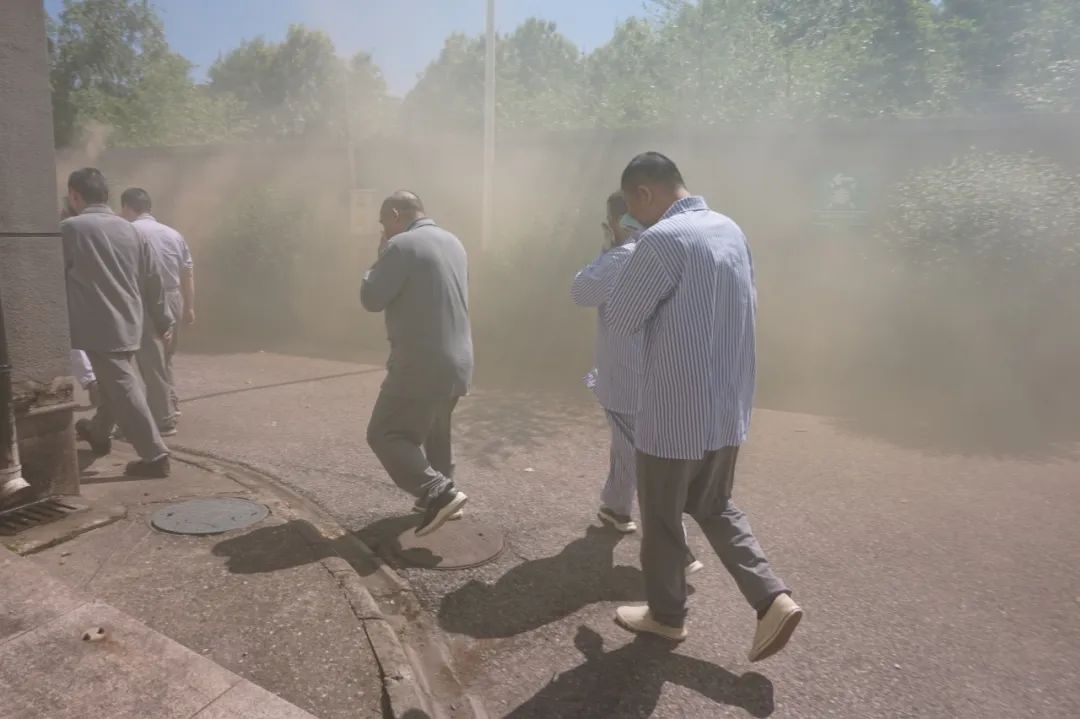 滑动查看更多演练流程有序拉开:模拟烟感报警,消控室第一时间电话确认,住院部工作人员发现火势难以控制,随即手工按下报警按钮,“呜哇呜哇呜哇……”刺耳的警报声连成一片,病房大楼电源强切,模拟中的火灾场景出现了。监控室人员在接到火灾报警后第一时间向总值班报告,总值班立即向总指挥报告,总指挥龚伟明此时通过消防广播发布了疏散逃生命令:初期火灾得不到有效控制,火势蔓延迅速,请大家迅速有序撤离病区。随即病区的工作人员迅速响应,打开安全通道的大门,立即组织各自病区的患者赶往安全出口。与此同时,中心的安保人员在听到消防广播后迅速反应,紧急赶到各个病区的安全出口,拔掉门外的插销。这时候的患者在消防志愿者与病区工作人员引导下,一手用毛巾捂着鼻子,一手搭着前面人员的肩膀,六楼、五楼、四楼、三楼……逐级而下,不惊慌,不叫喊,有序地撤离。行政等科室的工作人员,在听到消防广播后,早已赶到安全通道的出口,随时准备接应从里面出来的患者,参与模拟救援任务,确保疏散人员能平稳安全地到达指定地点。
