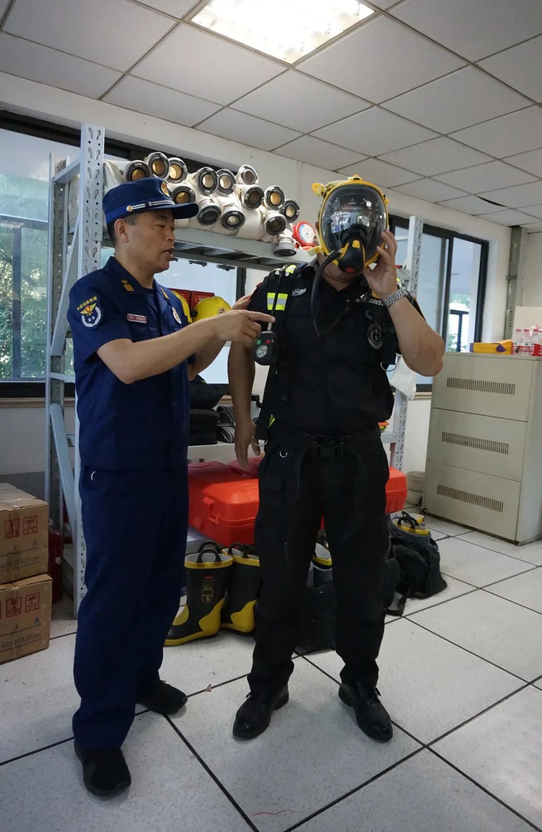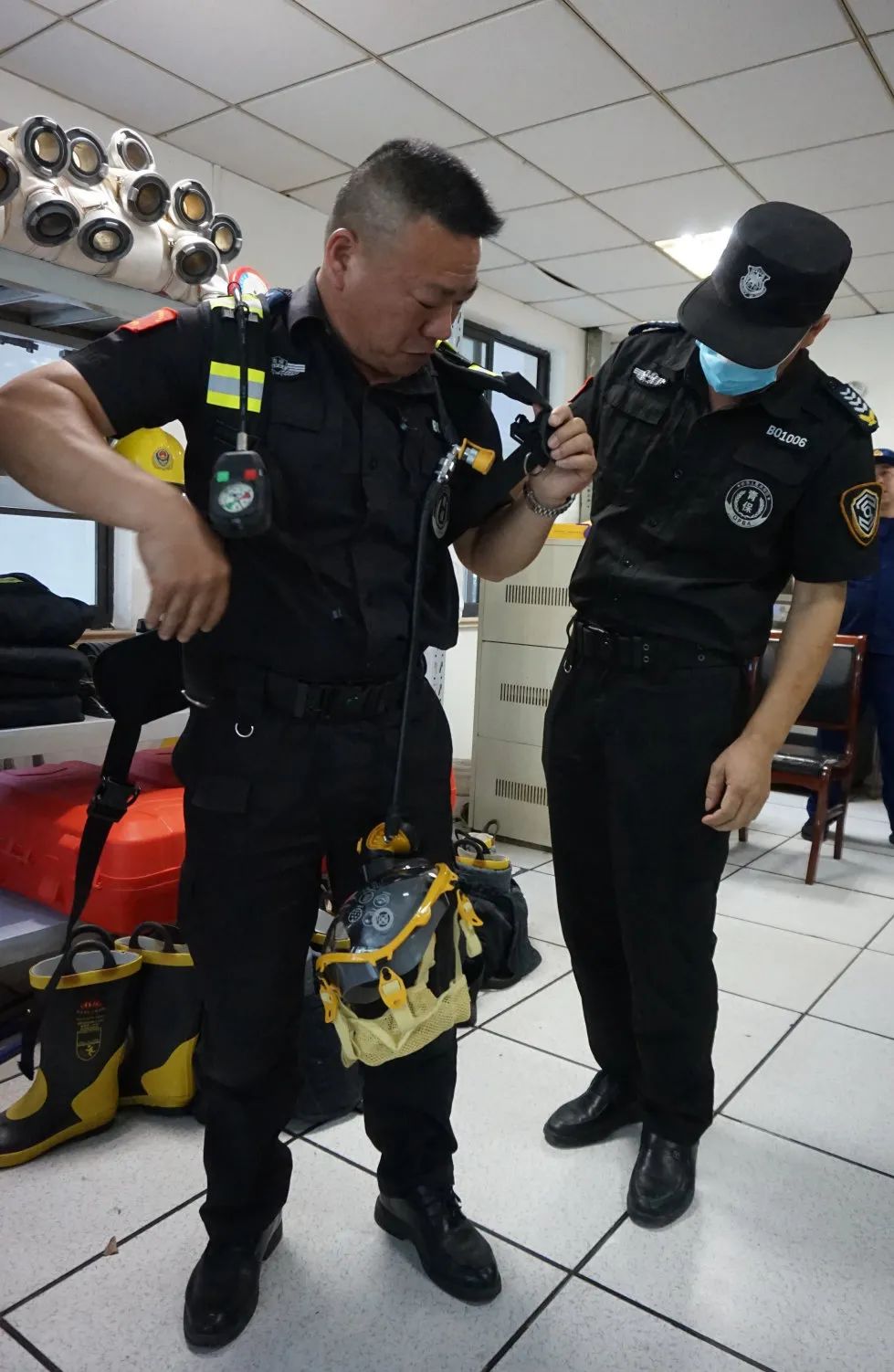随后,贺警官又来到中心消控室,对微型消防站的工作人员进行了实操训练,重点针对微型消防站器材的摆放、使用及穿戴等进行了详细的讲解,并通过实地操作与训练,进一步巩固提升微型消防站工作人员的业务水平和操作能力。