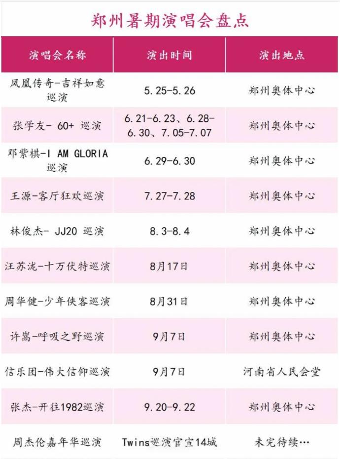 最近一张郑州暑期演唱会盘点图,又让阿球对这个中原碳水第一城提起了兴趣。(盘点图真实性有待商榷)邓紫棋、林俊杰、汪苏泷、许嵩、周杰伦...一个个戳在阿球的心巴上!