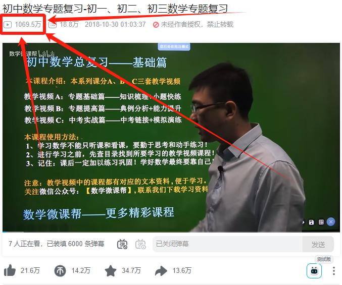 这3部B站资源博主,有这样的特征:B站里,讲初中数学最受欢迎的up主(视频总播放数过亿!推荐视频播放数过千万!);