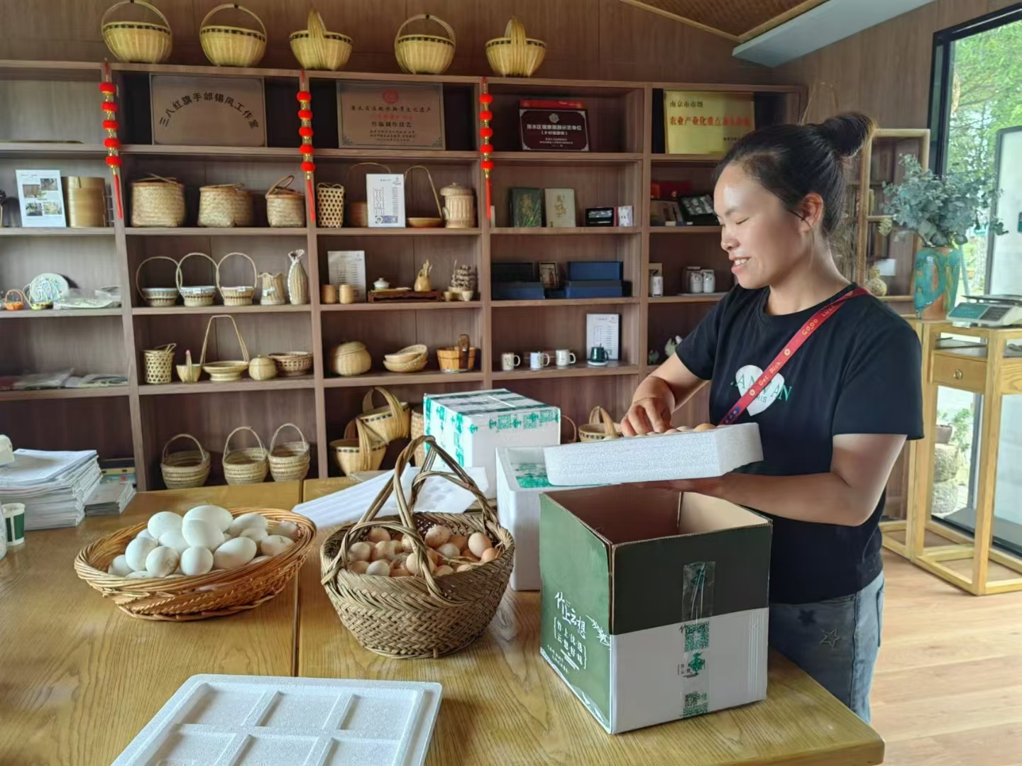 “我们通过在自己基地建立的‘交邮快供+电商’融合服务点,能够将农产品订单第一时间发出,销往全国各地。”晶桥镇竹上云想旅游度假区负责人说,自度假区2023年7月建立“交邮快供+电商”融合服务点以来,已经通过这个平台销售了300多万元的农产品。晶桥镇邰村普仁有机蔬菜种植基地是南京市首个盒马村,也是南京市首家取得供港资质的本地蔬菜生产基地。2023年5月,晶桥镇联合溧水区交运、邮政等部门,在晶桥镇邰村普仁有机蔬菜分拣中心建立了“交邮快供+电商”融合服务点。南京普仁有机农业公司负责人表示,通过“交邮快供+电商”融合服务点,已经销售蔬菜近百万元。目前,晶桥镇已联合区相关部门,在当地建立4个“交邮快供+电商”融合服务点。