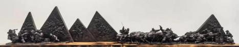 《同心》荣获第二届中国工艺美术博览会最高奖金鼎奖这件作品取自解放战争题材,表现形式圆雕和浮雕结合,革命军队从出发到凯旋归来胜利的背景浮雕,百姓为军队运粮,支持抗日的圆雕,通过抗日军人接过民众一碗水,以及胜利归来的军队受到百姓的热烈欢迎这场景,体现了军民同心,无往不胜这永恒的主题。作品人物众多,但多而不乱,人物物象间有无形的s型贯穿整体。高低错落、疏密有序、气势磅礴,充满张力,有很强的形式感。运用现代构成理念,以及写实和抽象的巧妙结合,使作品具有很强的现代感。