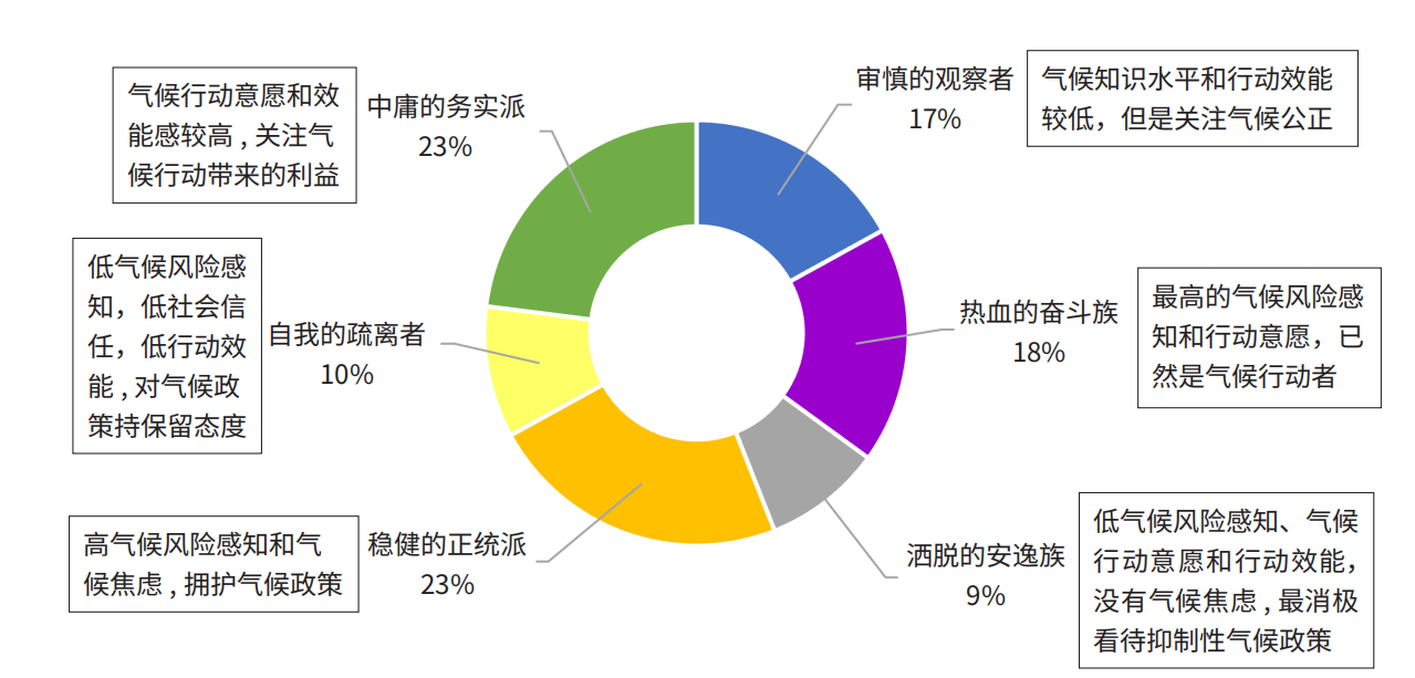 首先,本报告以生活信念为底层逻辑,基于实证研究结果,将中国Z世代分为稳健的正统派、自我的疏离者、热血的奋斗族、洒脱的安逸族、中庸的务实派和审慎的观察者这六类人群,并分别整理得到各个人群的气候特征。