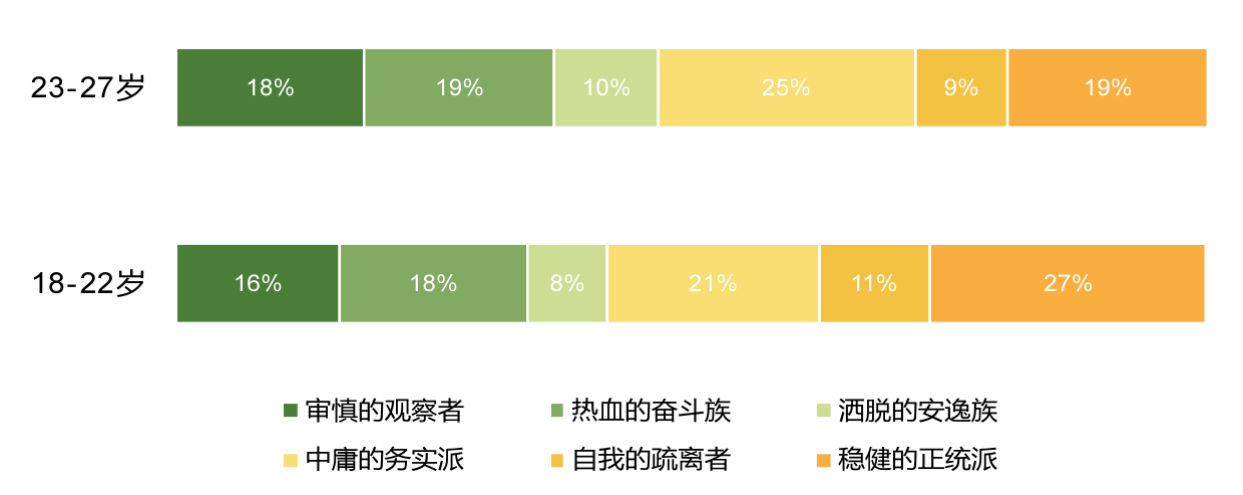 其次,基于Z世代所处的年龄阶段,本报告将他们分为18-22周岁和23-27周岁两个子世代,并发现: