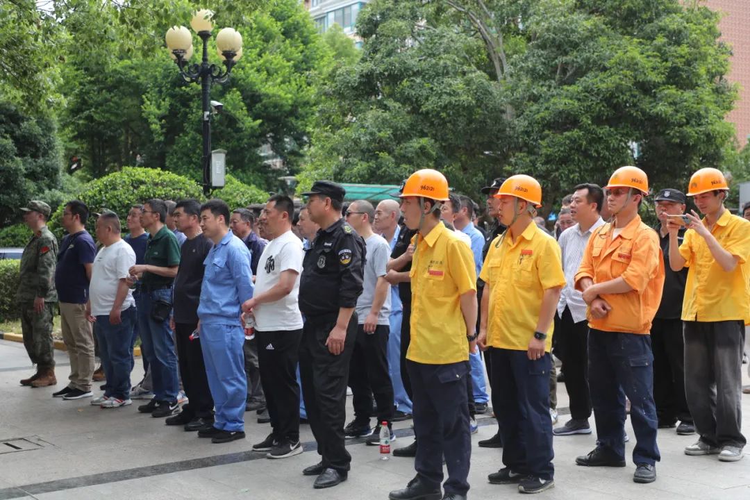 由武装部、各村居组成的16支参赛队伍于飞马广场整队待命,参演人员共同至演练区就位,防汛演练正式开始。