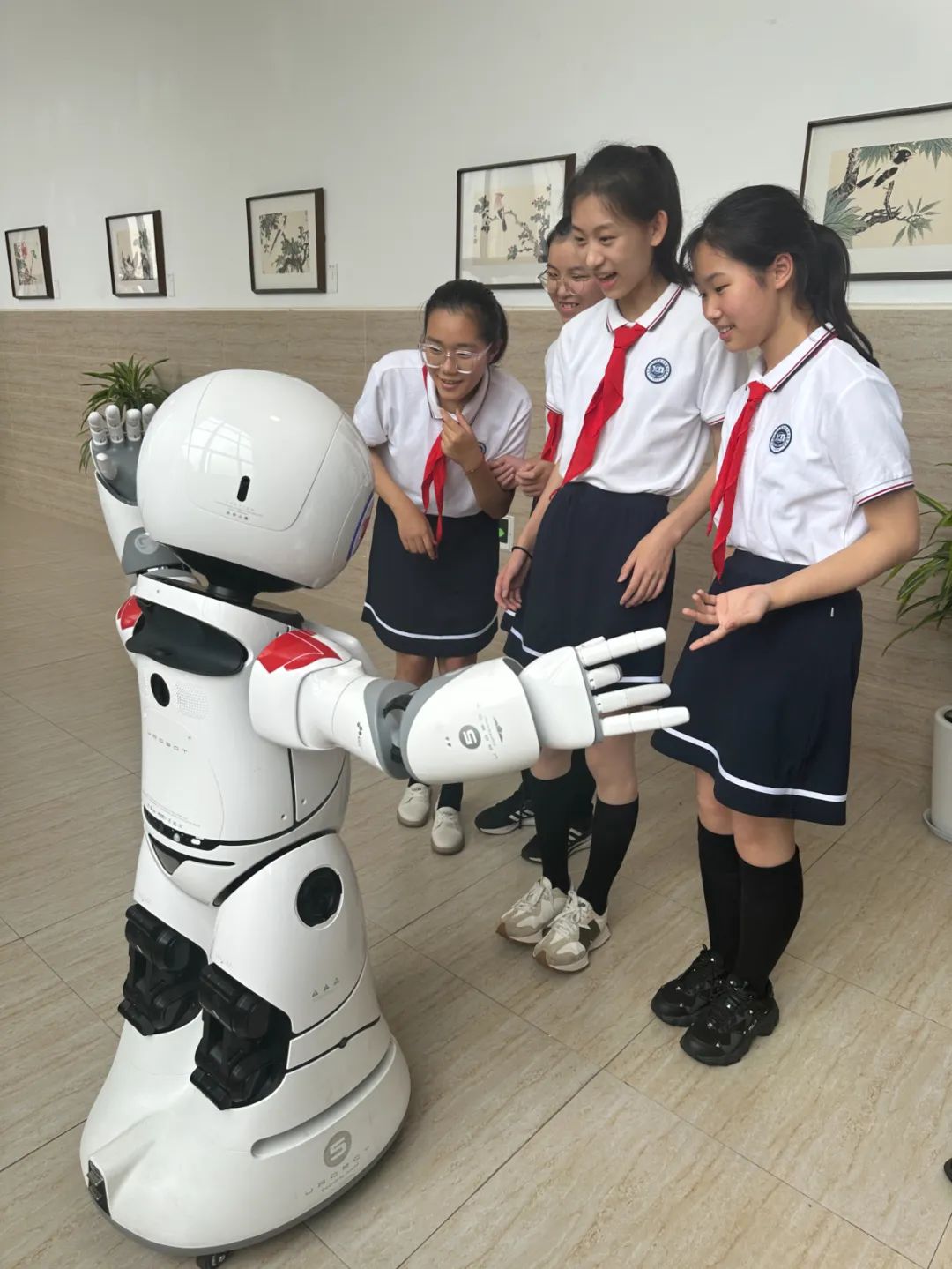 在活动现场,一群学生围绕着机器人问个不停,通过与机器人互动,寓教于乐,还能在轻松的氛围中了解党的历史和精神,激发对党的热爱和对学习的兴趣。