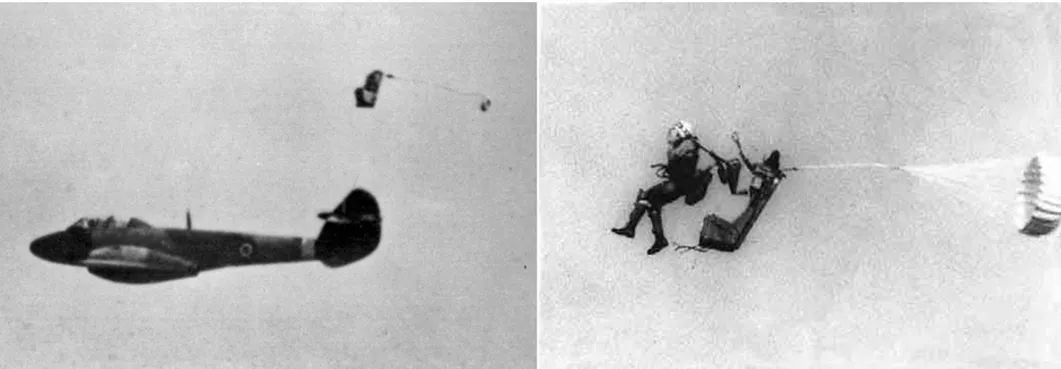 “二战”时期,降落伞已成为军用飞机必备的救生工具。但随着飞机的飞行速度不断提高,单纯靠飞行员的体力,爬出座舱、完成跳伞逃生的难度越来越大,且大速度情况下的跳伞,飞行员很容易与飞机机翼、垂直尾翼相撞。