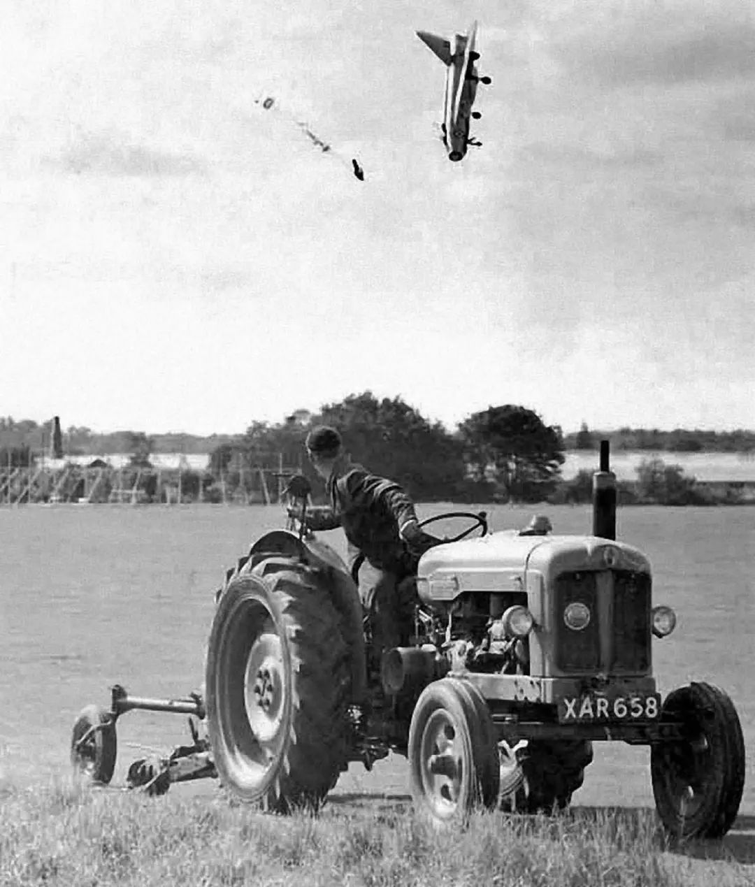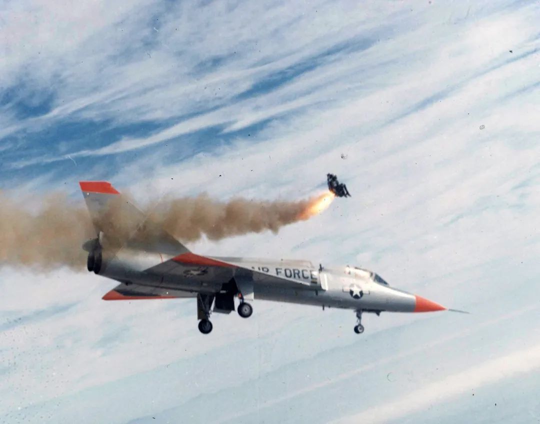 1962年9月13日,英国赫特福德郡哈特菲尔德机场外,在非常低的高度上“闪电”F1战斗机上的试飞员鲍勃·索雷弹射救生(弹射座椅型号为马丁·贝克Mk.4)。上图这张传奇照片的拍摄者是试飞员的邻居吉姆·米兹,当天他本想为邻居拍张飞行照。马丁·贝克公司官网数据显示,截至目前,该公司的弹射座椅产品已经7722次成功拯救飞行员的生命。