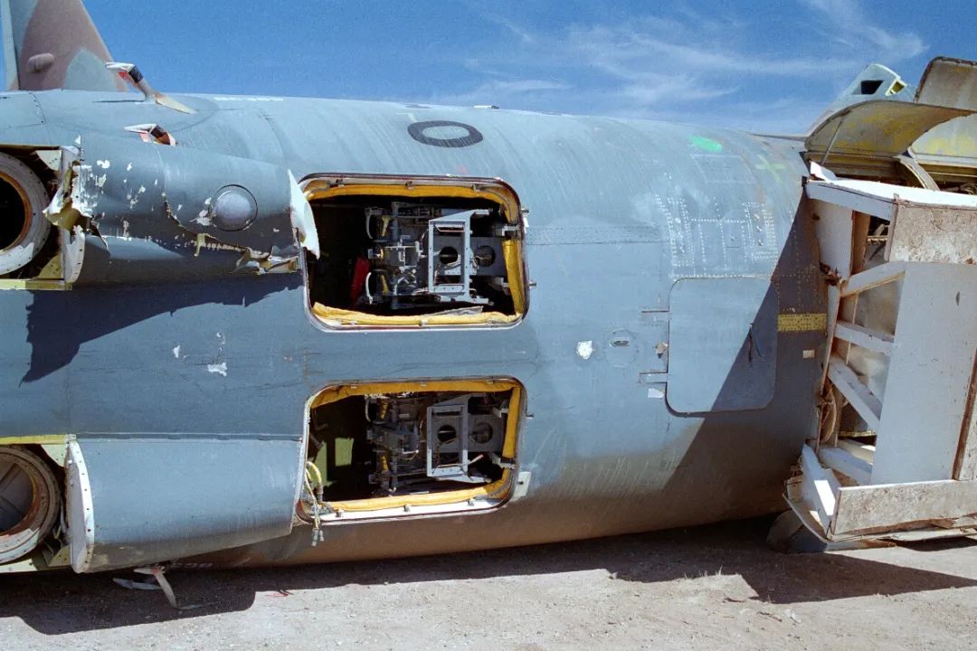已经被拆解的B-52G轰炸机,得见其机首底部的2名导航员席位、弹射座椅向下弹射的舱盖。当弹射座椅在大型飞机例如轰炸机上使用时,可能会遇到的一个问题是要向下弹射。比如在美国空军B-52轰炸机上2名雷达导航员的席位是位于下层甲板,所以弹射座椅就只能选择向下弹射。