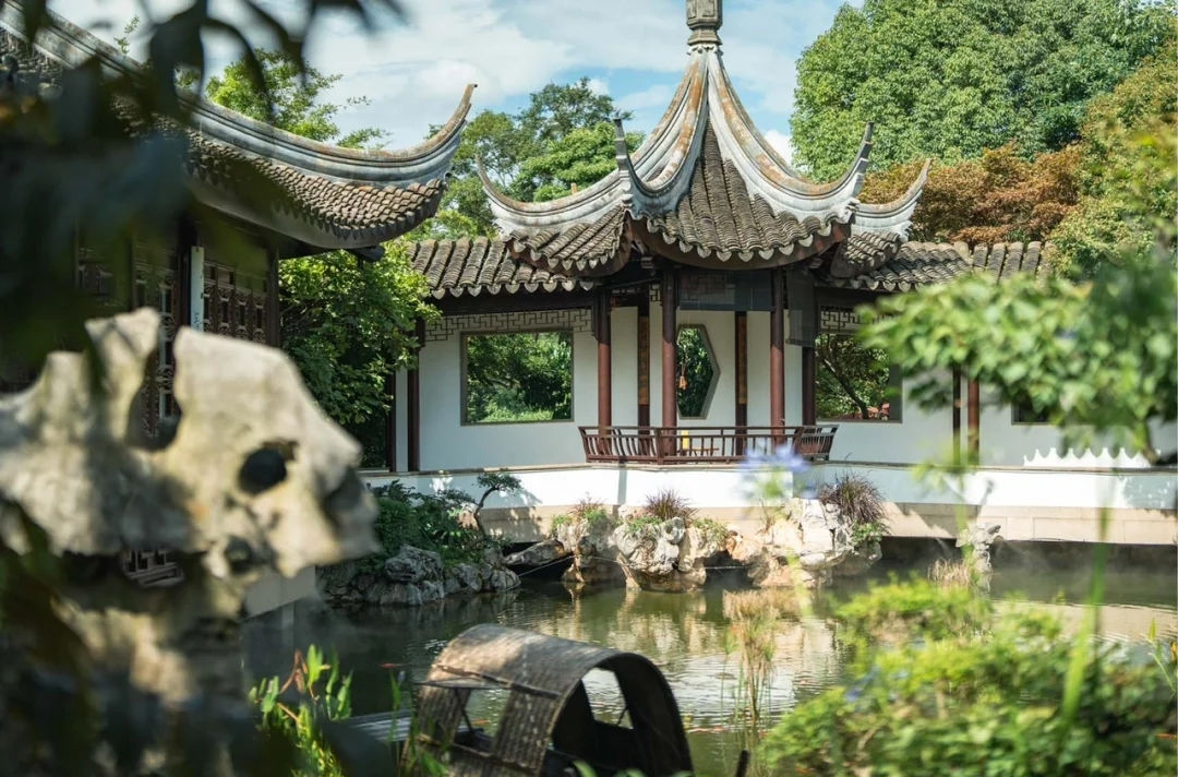 具有东方神韵的精致布景,曲折游廊,一带池水,亭台水榭楼阁,水上小舟轻泛,可谓一步一景,处处画卷,让人仿佛穿越时光。