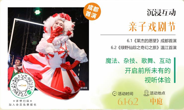 策划组织杨超越见面会、成都说唱厂牌“耍家帮”、西南先锋乐队等演艺活动,COS达人落落酱、岑青、猫猫三岁、脸扁等带来线下动漫签售,强势吸附年轻客群。针对亲子家庭,携手乌镇戏剧节原班创作团队倾情献映,《莱杰的愿望》成都首演,及独角兽剧团《绿野仙踪之奇幻之旅》区域首秀。