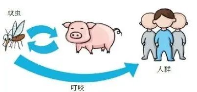 蚊子通过叮咬患病的猪而感染乙脑病毒,再通过叮咬把病毒传染给人。