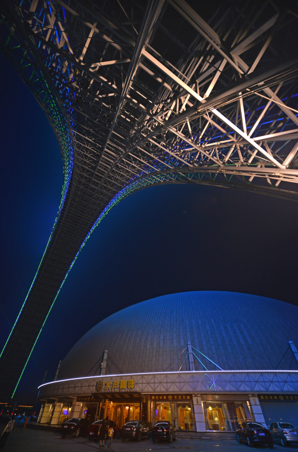 这个坐落在湖边上的半球,建筑风格新颖别致,融汇了东西方的文化神韵,是建筑与艺术的结晶。