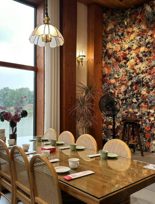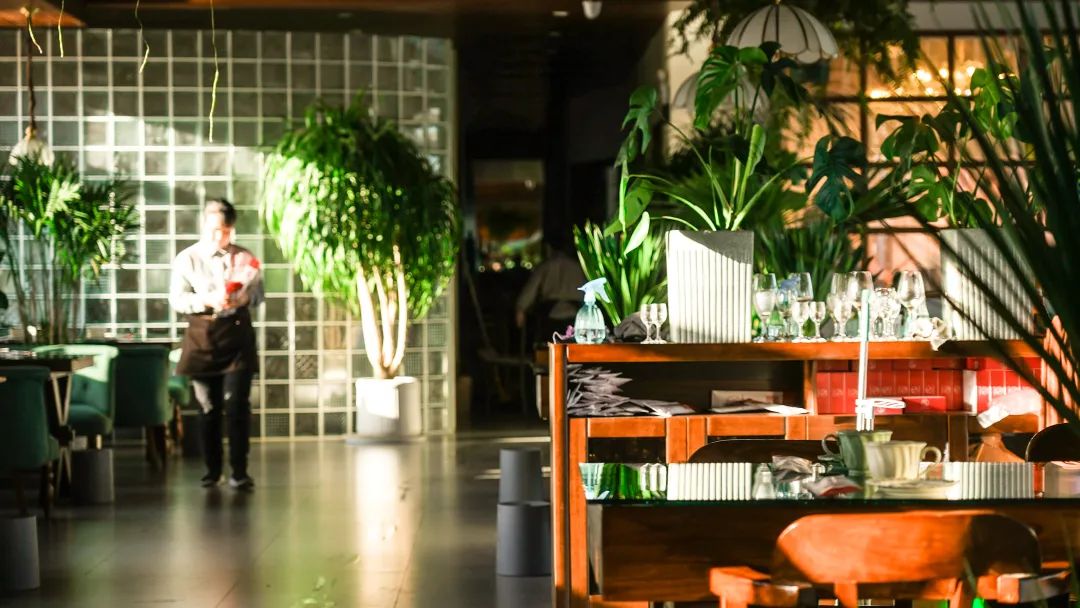 这里经过改造后,雅致的装修风格,却比千篇一律的ins风更有气韵。走进餐厅内部,置身绿植环绕的玻璃餐厅,听风赏味,耳边是湖水的风吟浪涌,眼前是满目的绿植花艺,阳光洒落,闪耀温暖光晕。