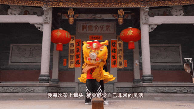 眨着两只大眼睛明黄色的狮头或走或跳