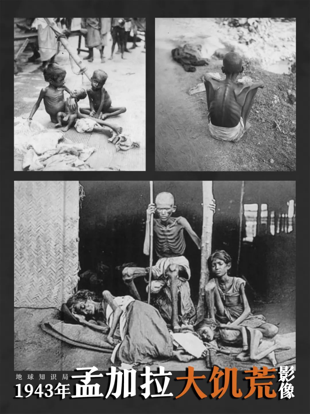 出生于孟加拉的诺贝尔经济学奖得主阿玛蒂亚·森,在他的《贫困与饥荒》中,提到的四个饥荒案例就有两个是孟加拉,书中得出了这样的结论:绝大多数饥荒是“丰饶中的贫困”。即使到了1943年,英国统治下的孟加拉仍然会发生饿死300万人的大饥荒,当时留下的影像可以说是悲惨至极。