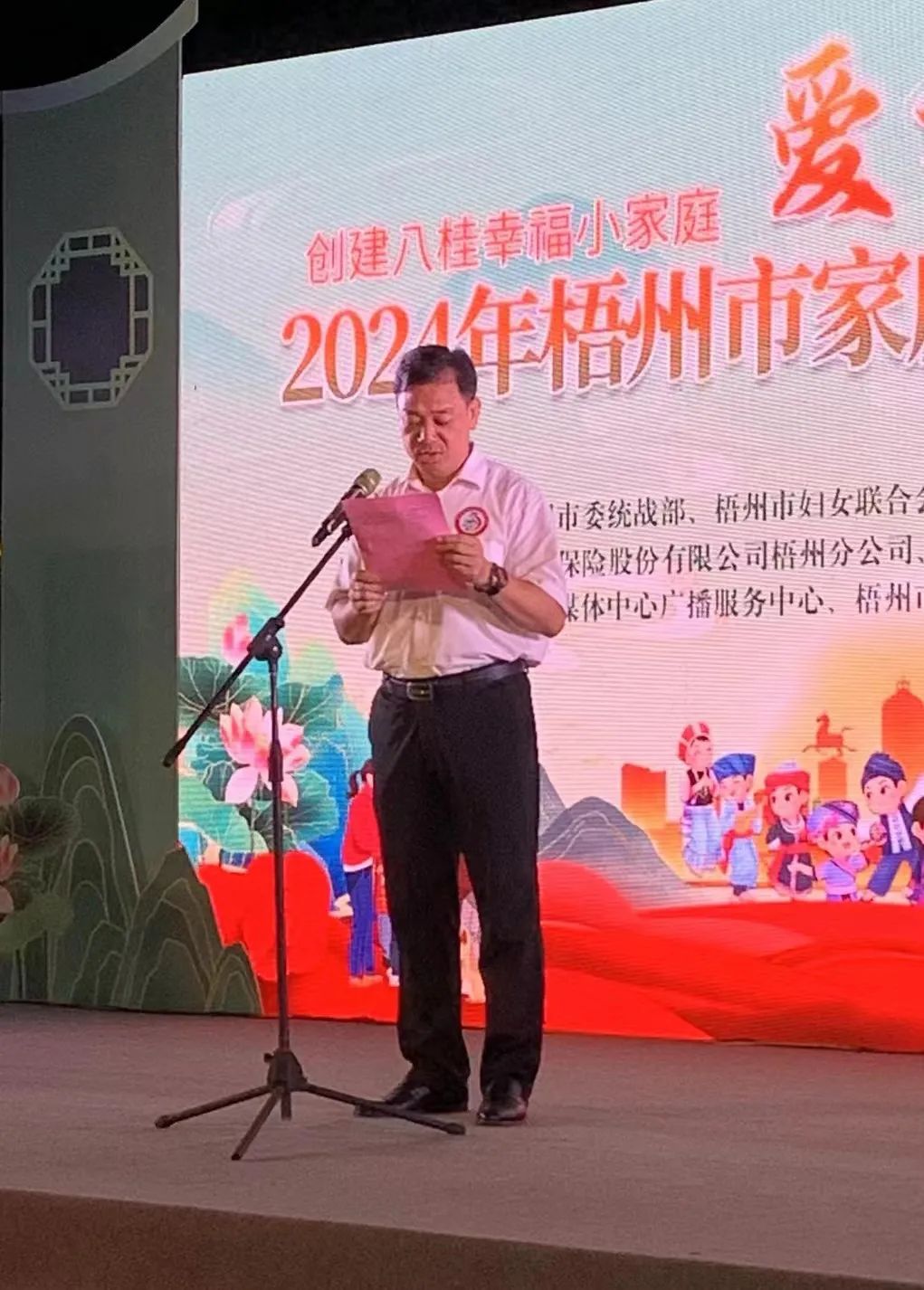 为深入贯彻落实习近平总书记关于注重家庭家教家风建设的重要论述,大力营造家庭文明新风尚, 凝聚推进中国式现代化建设的家庭力量。5月30日晚,"创建八桂幸福小家庭,共筑民族团结大家园"——2024年梧州市"爱梧家"家庭家教家风主题歌会活动在梧州市三祺城音乐露营广场隆重举行。市委常委、统战部部长何世恰岀席活动并致辞,市政协副主席李彤华、市政府二级巡视员吴舒沁岀席活动。
