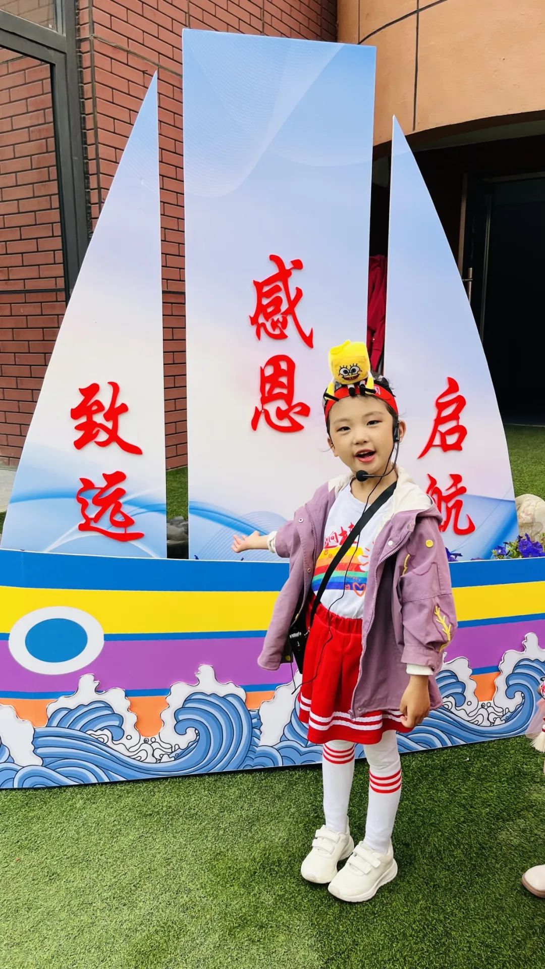 在另一角的“感恩、致远、启航”帆船模型前,孩子们用童真的声音解释着这艘船的象征意义。他们把自己比作幼儿园里的小浪花,快乐地学习、生活,而风帆则代表着大班、中班、小班三个年龄段的孩子们,他们共同扬起希望的风帆,驶向梦想的彼岸。