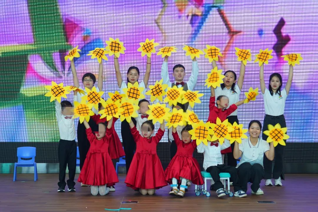 联欢活动精彩纷呈,不仅有晨阳幼儿园和界涌幼儿园带来的《古丽古丽》、《童年叮叮当》等活泼欢乐的舞蹈,还有中心脑瘫、听障组合作的情景表演《最好的未来》,更有孤独症、智障组精心筹备的师生演唱《夜空中最亮的星》……他们通过一系列精彩纷呈的才艺表演,共同营造了一个欢乐祥和、和谐共融的节日氛围。孩子们在舞台上展现出自信与活力,他们天真无邪的笑容感染着在场的每一位观众,赢得了阵阵热烈的掌声。