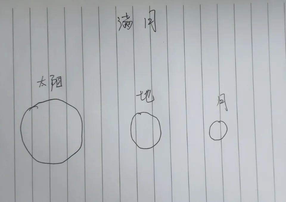 图:简单画了下,满月时,日、地、月的位置是这样的唯一一天月亮白天不会出现在天空中的是满月那一天,这天太阳和月亮正好在地球的两边且正对彼此,因此随着地球的自转,月亮会正好会在太阳落下时升起,完美错过彼此。