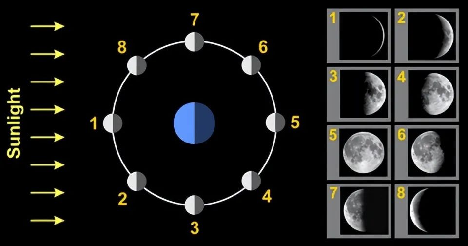 为什么有满月?其实,关于月相有一个典型的误解,很多人认为月亮的圆缺周期是由于地球的阴影造成的,其实月相是因为我们看到月球被照亮部分的多少决定的。