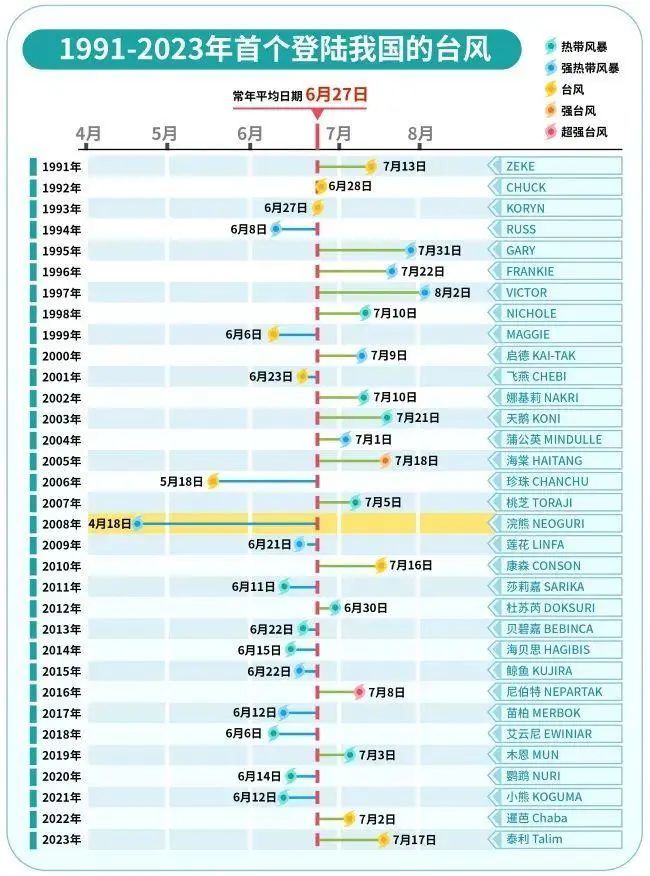 统计显示,初台的常年平均(1991至2020年)日期为6月27日,今年初台日期较常年平均日期偏早26天。