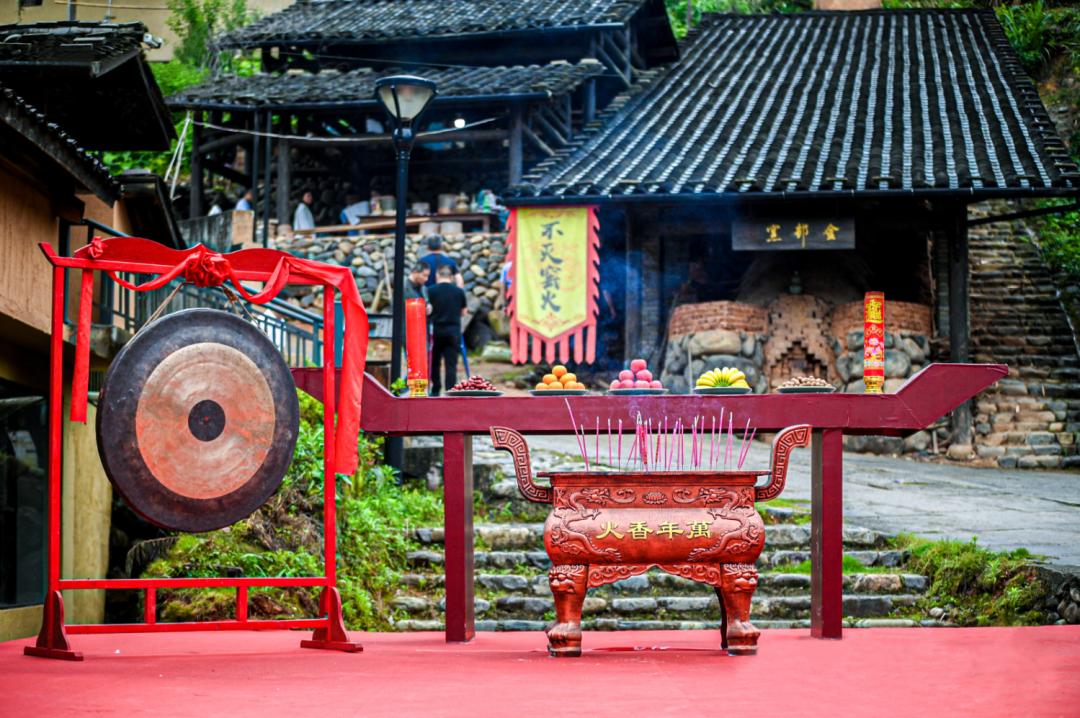 开窑前往往还要举办祭窑式。祭窑式,主要有拜祖师爷、择基建窑、祭窑、窑场用膳、入窑、做窑福等环节,这是龙泉瓷业长期发展形成的一种习俗。净手、上香、喝开窑酒、祭天、祭地、祭九天玄女……整个祭窑进程虔诚、庄重、肃穆,同时不乏“节日”般的欢欣喜悦。很多瓷人都选择农历七月十八这一天祭窑、开窑,相传这是龙泉青瓷哥窑祖师章生一创制“窑变青瓷”的日子,后人顺理成章将其视为“祭窑日”。