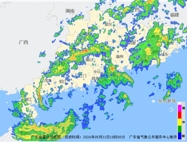 预计台风“马力斯”将继续往北偏东移动,广东的雨区会逐渐往东扩展,6月1日-2日早晨,阳江、珠三角、韶关南部、清远东部、河源、梅州、粤东市县阴天,有暴雨局部大暴雨,其余市县多云到阴天,中到大雨转阵雨。待到6月2日白天到6月3日,雨势减弱,中南部市县多云到阴天,有中雨局部大雨到暴雨;其余市县多云,有阵雨。
