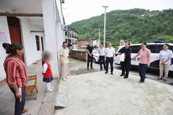 5月30日下午,重庆市高级人民法院机关妇委会王萍副主任、孙玉涛委员与重庆市第二中级人民法院、重庆市开州区人民法院院领导一行,来到开州区赵家街道南山村、幸福桥小区和柳池村留守儿童小雅、小亭、小文的家中,仔细向留守儿童和共同生活亲属询问他们的学习、生活情况,了解他们的现实困难。一年级的小雅,父母离异后,跟随六十多岁的奶奶和继爷爷生活。年幼的小雅,面对突然到来的陌生人,还有些胆怯,对叔叔阿姨们的提问,开始只是点头或摇头回答。在耐心的倾心交谈下,小姑娘逐渐打开了心扉,对叔叔阿姨说很喜欢在学校的生活,对叔叔阿姨的到来也感到开心和快乐。