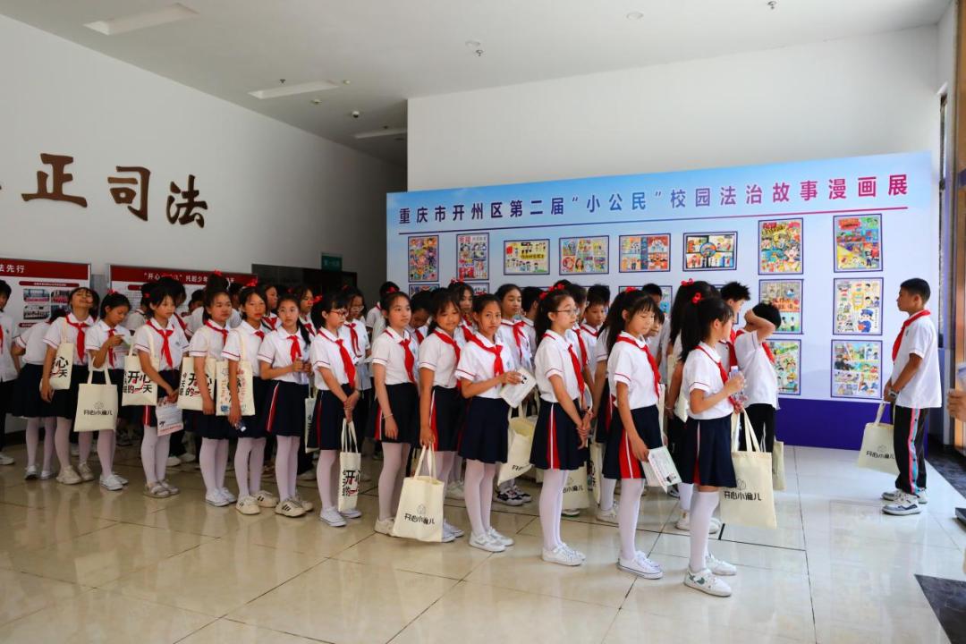 小朋友们还参观了开州法院与开州区实验中学联合举办的“开心小渝儿”杯第一届“我身边的法律”校园法治故事获奖征文展和开州区第二届“小公民”校园法治故事漫画展。小朋友们观看着获奖作品,感叹着大哥哥大姐姐们的写作水平和绘画水平,在心中树立起了学习追赶的目标。