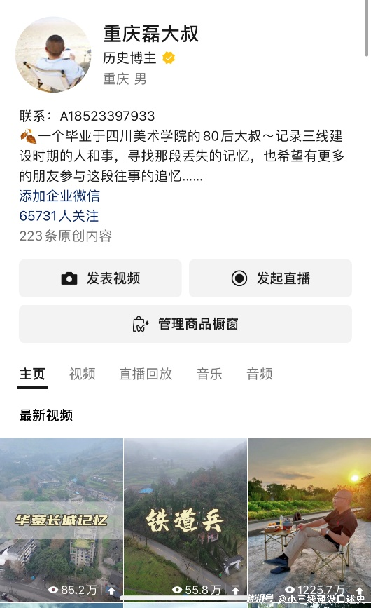 2012年开始,我通过深入的了解和实地的走访,对三线建设的认识也不仅仅像原来只停留在三线建设的那个概念那些出版物上,我开始使用《重庆磊大叔》这个帐号以短视频的方式记录三线建设。
