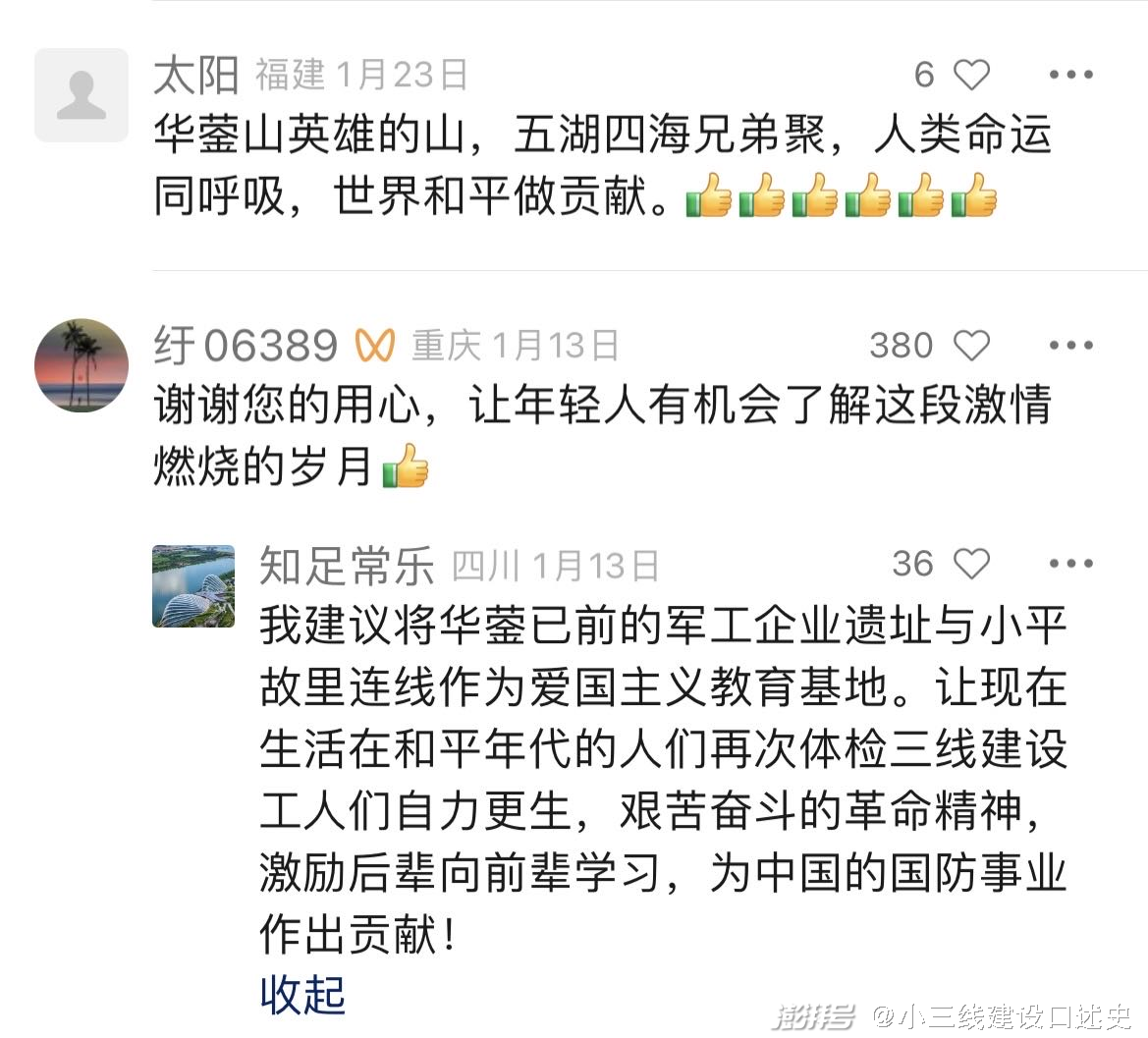 感动之余,我除了坚持还是坚持。如果可以用一句话说清楚我的此时此刻的心情,那就是——三线建设老同志翘起的大拇指,将是我明天继续行动永远的动力。
