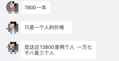 举个例子,世茂滨江花园7800元一年,这还只是一个人的价格,13800元是两个人,17800元差不多就是一家三口
