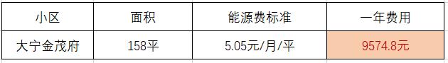 以大宁金茂府为例,有一个叫能源费,收费标准是5.05元/月/平,按照158平户型一年大概产生1万左右的支出