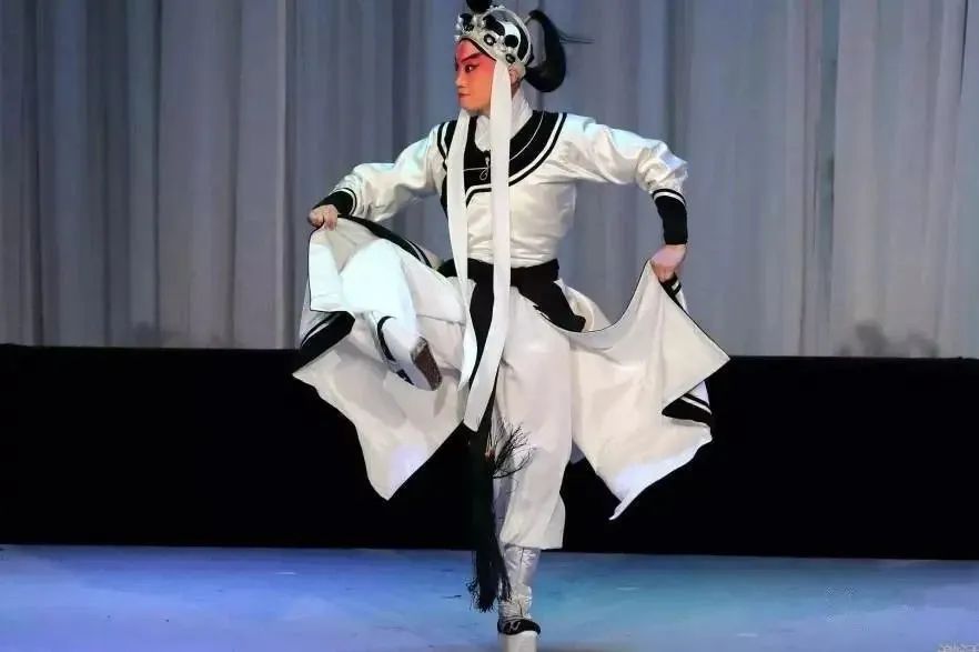 传统四方步要求腰板挺直,抬腿亮靴,步伐适度,利落稳健;还会随着角色的年龄变化,老年要慢抬快落,青年要快抬慢落,更符合人物特点。