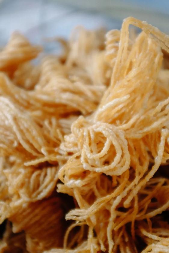 捣成的辣椒面还需再混合芝麻、花生核桃碎调和,让辣香、甜香再增一重坚果油香。最后以鸡汤吊鲜,搅合成酱汁般浓稠的汤底。待锅开,沸腾唤醒重重香气,红的热烈,甜的热情,辣的嚣张。放眼望去,软弹筋道的牛筋面身披红浪,红糊中几度翻滚,香鲜汤汁顺面上的小孔钻入钻出,下锅几秒立入味,一夹出汁。