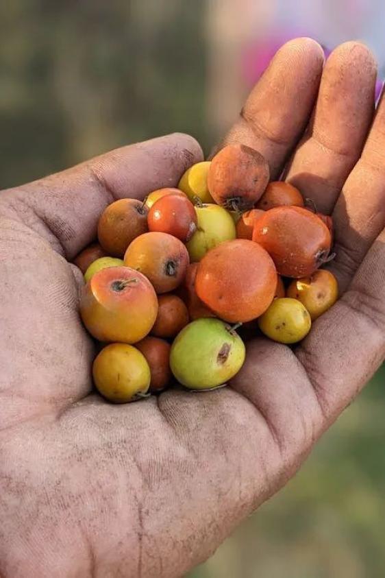 张牙舞爪的树枝,缀着一颗颗红果,如玛瑙,不及蚕豆大小,却有沁人酸甜。老一辈总喜欢摘一碗沙枣放着,闲了吃几颗,回忆无限。