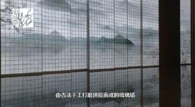 这是由2828块由古法手工打磨拼接而成的琉璃墙,与其背后的LED屏幕共同组建而成的,它呈现出一种江南山水交相呼应的叠化效果,走进其中,宛如一幅琉璃版的千里江山图,徐徐打开。