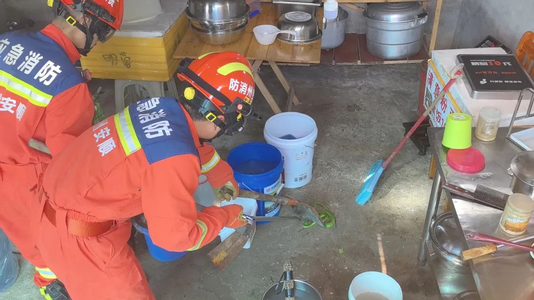 近日,贵州铜仁,石阡县一民房有蛇出没,接到报警后,当地消防部门立即出动将蛇抓获。